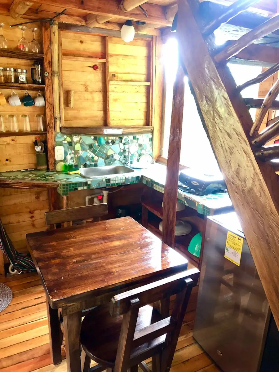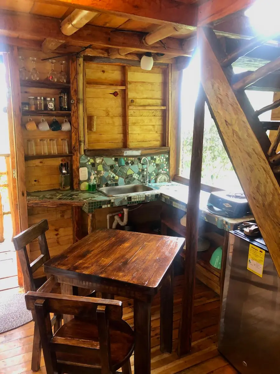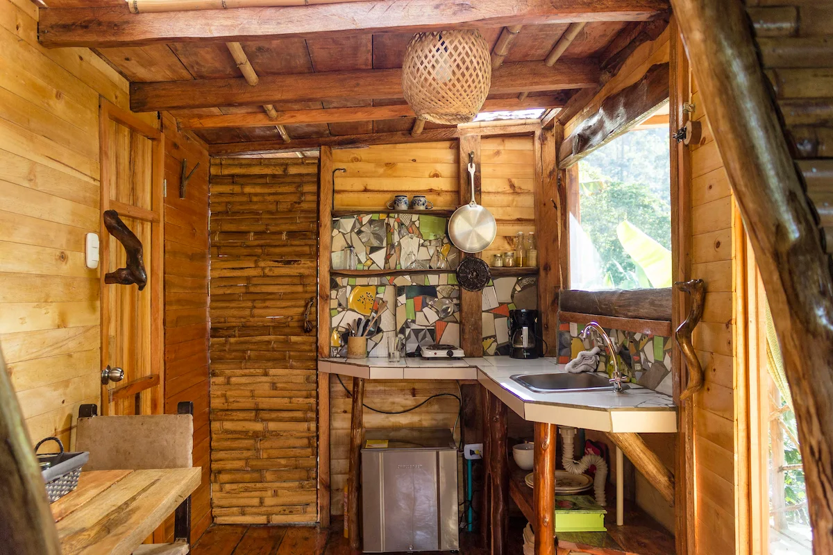 Equipadas con cama doble, ducha caliente y una pequeña cocina, combinan confort y autenticidad. Desde sus balcones y grandes ventanas, ubicados entre los árboles, podrá observar las aves y disfrutar de la tranquilidad que brinda el sonido del río
