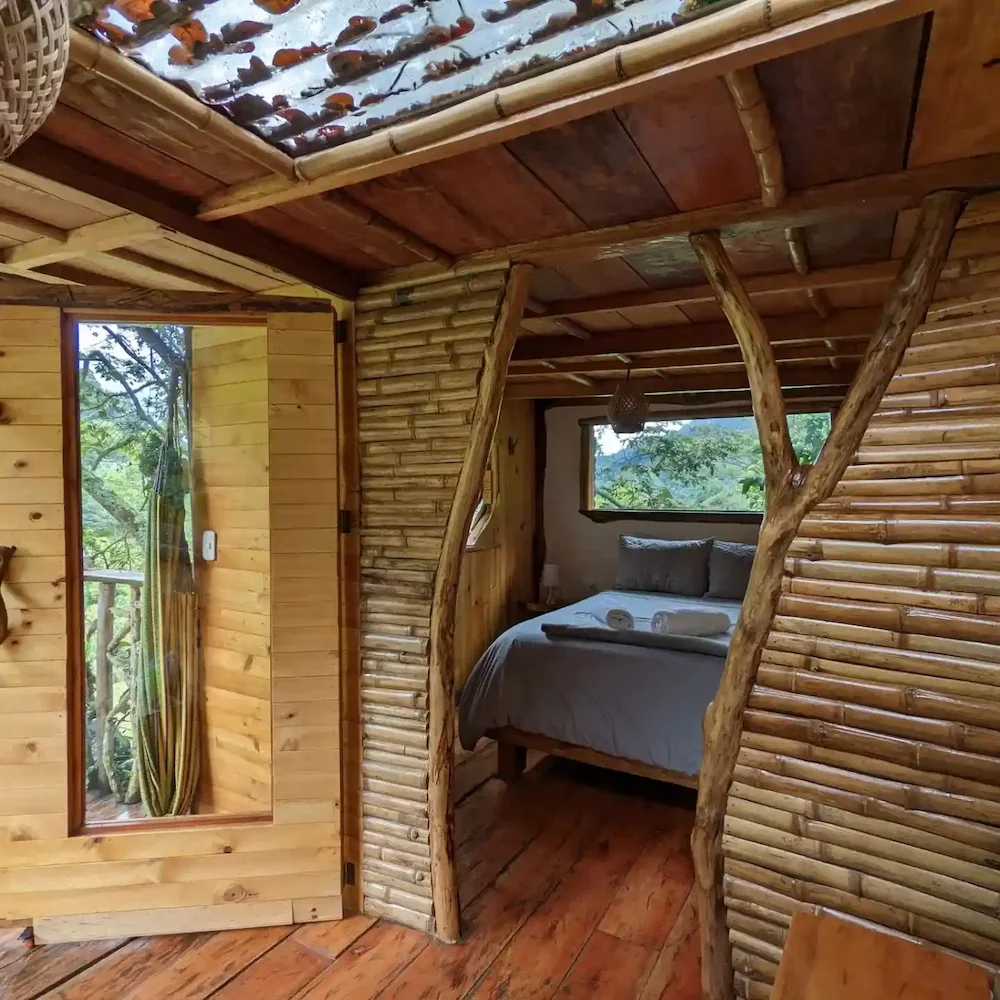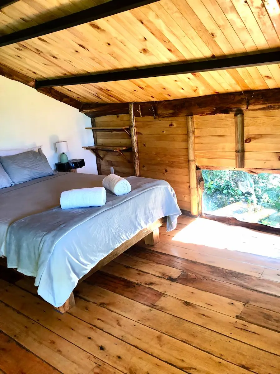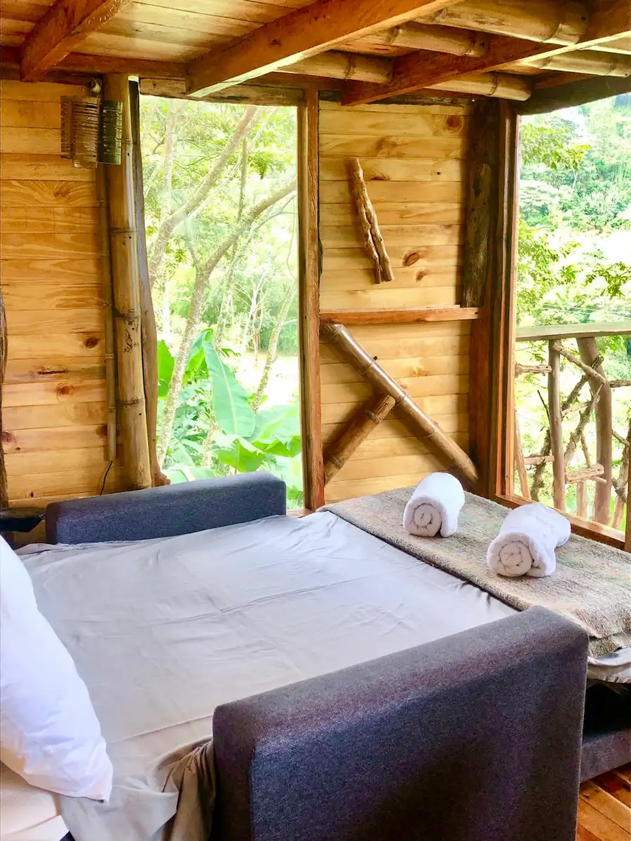 La finca Flora del Río ofrece tres habitaciones con cama doble y baño privado. Una de ellas tiene capacidad para tres personas, gracias a un sofá cama adicional. Cada habitación ha sido cuidadosamente diseñada para propiciar una conexión armoniosa con la naturaleza. Con detalles artísticos en su interior, son espacios de tranquilidad donde es posible escuchar el suave murmullo del río desde la cama.