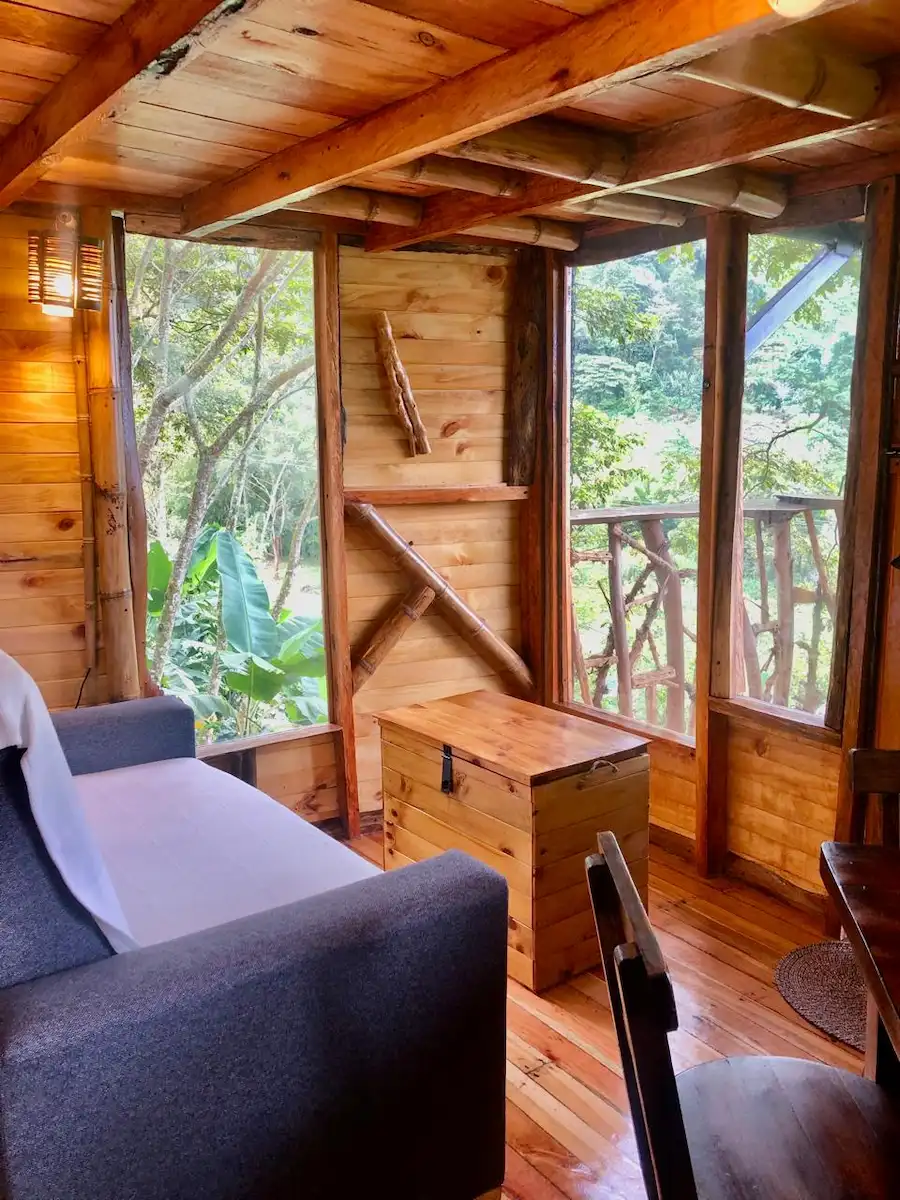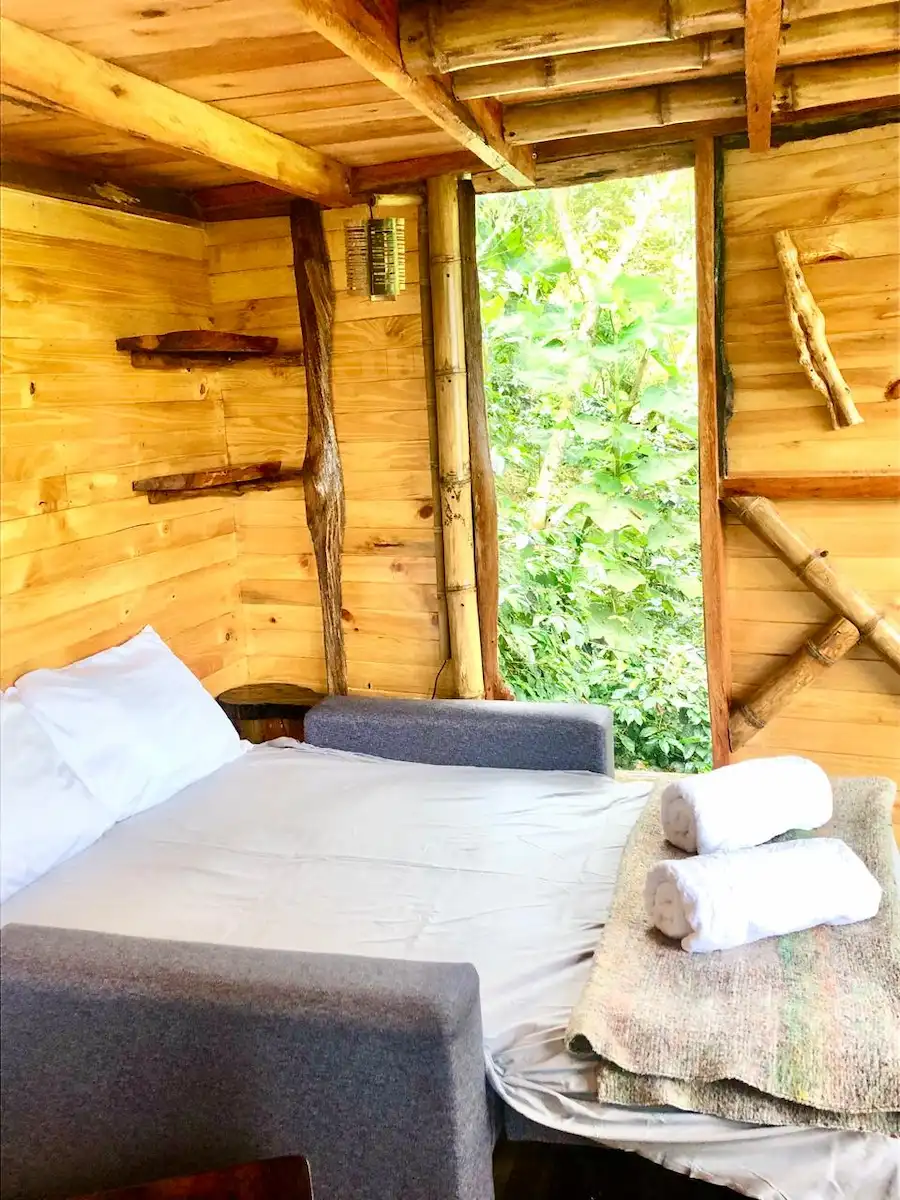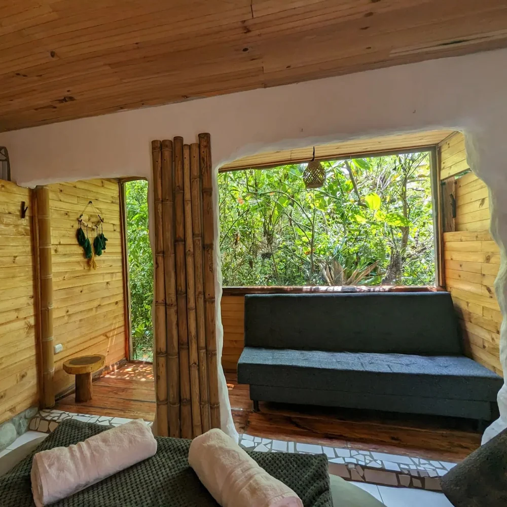 Las cabañas en Flora del Río ofrecen un refugio íntimo y cómodo en plena naturaleza.Las cabañas tienen un diseño único y artístico, creado por sus propios dueños, que solo podrás experimentar aquí.